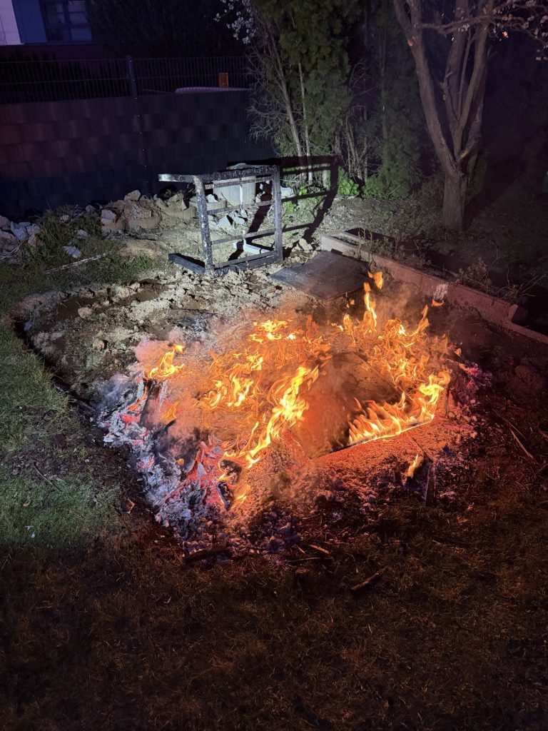 Die Besitzer hatten Gartenabfälle verbrannt. Da von dem Feuer keine Gefahr ausging, übergaben wir die Einsatzstelle an die Polizei und beendeten den Einsatz.